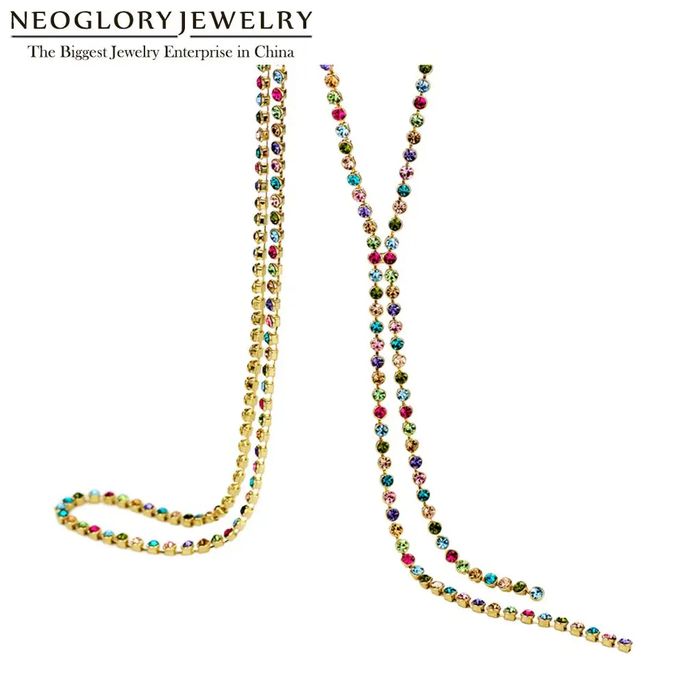 astounding Neoglory Austrain Crystal Colorful Long Chain Beads Tassel Necklaces for Women Girl Fashion Jewelry
