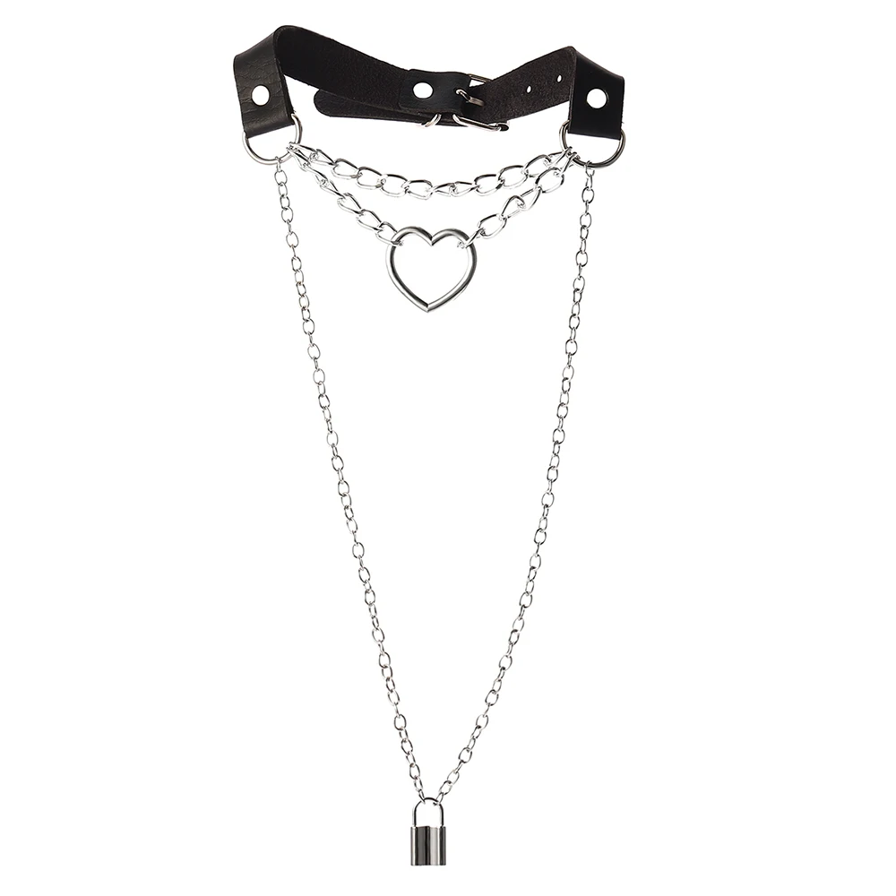 lower price Gothic heart Lock chain necklace multilayer Punk choker pendant necklace leather emo Kawaii rave je