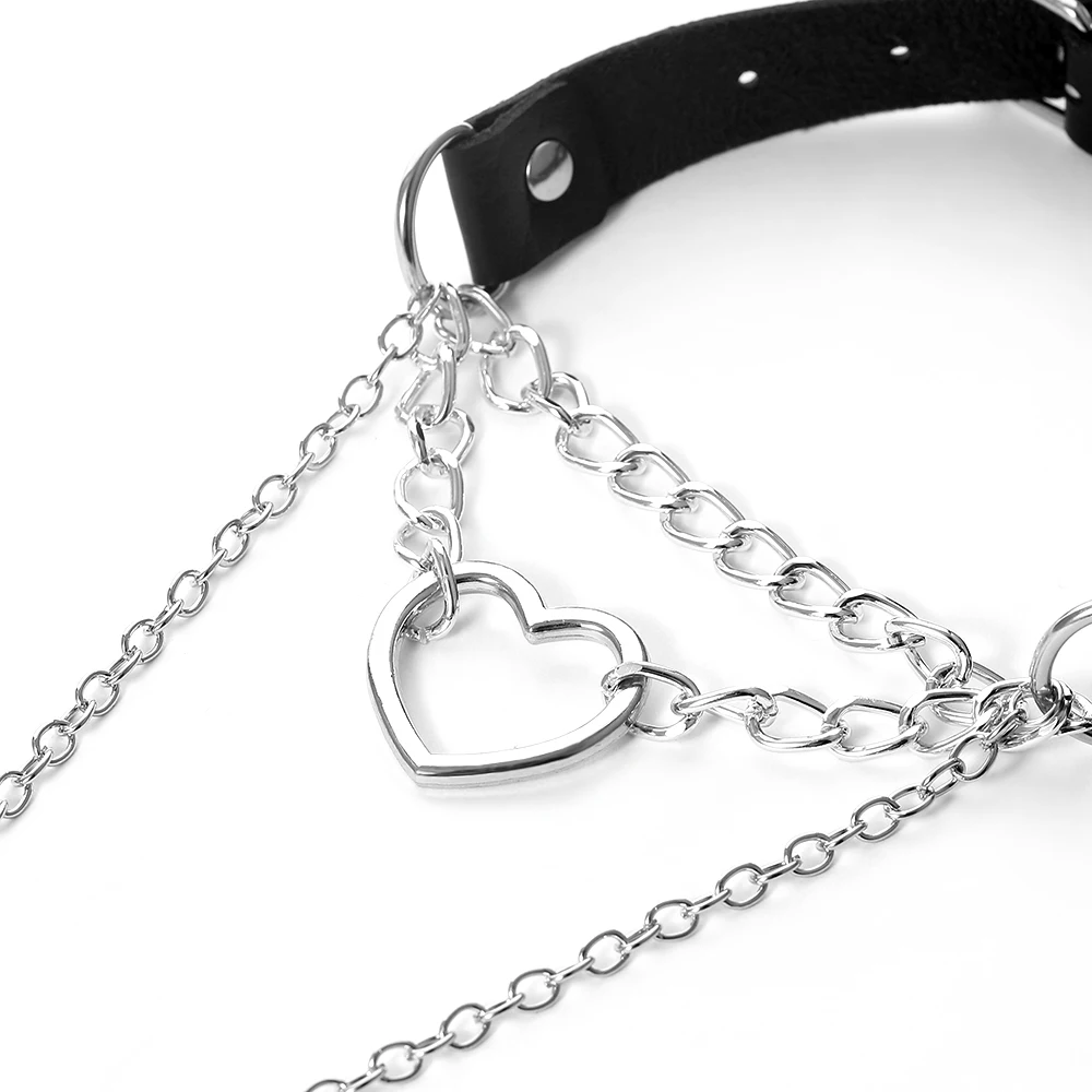 buy Gothic heart Lock chain necklace multilayer Punk choker pendant necklace leather emo Kawaii rave je