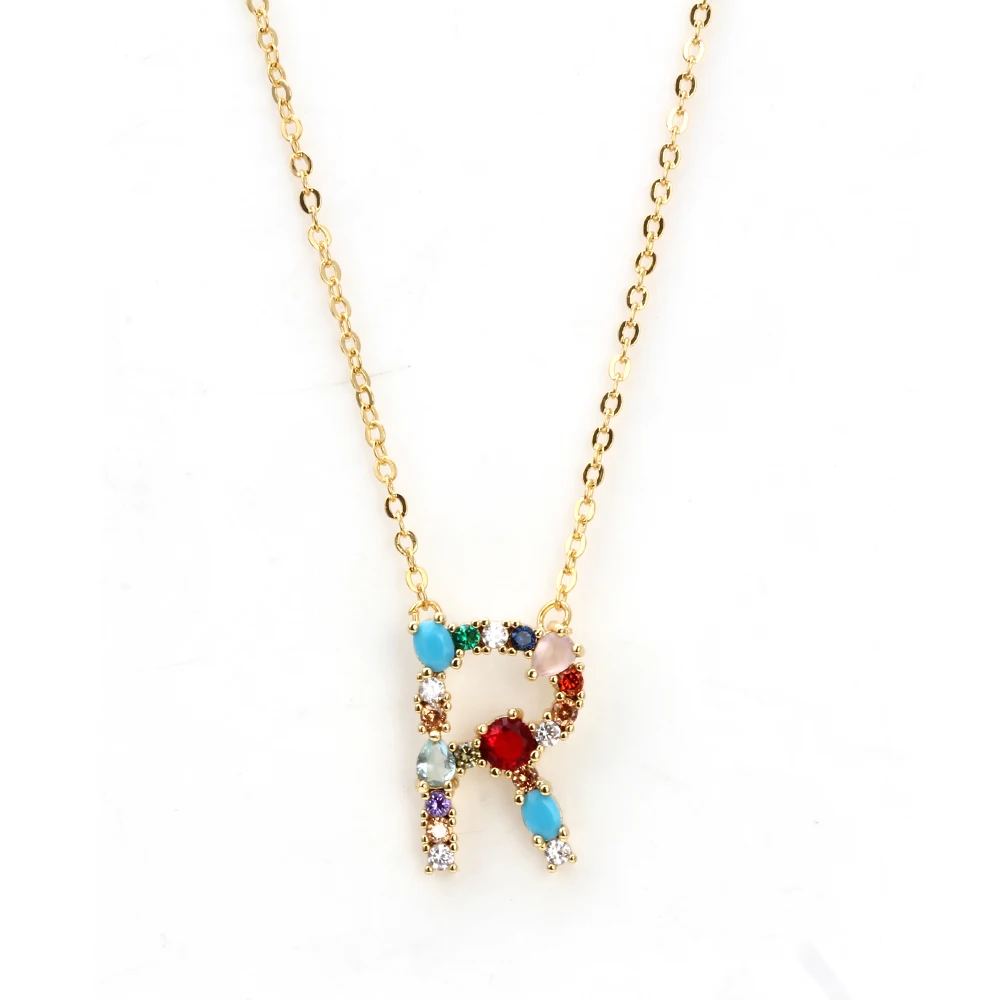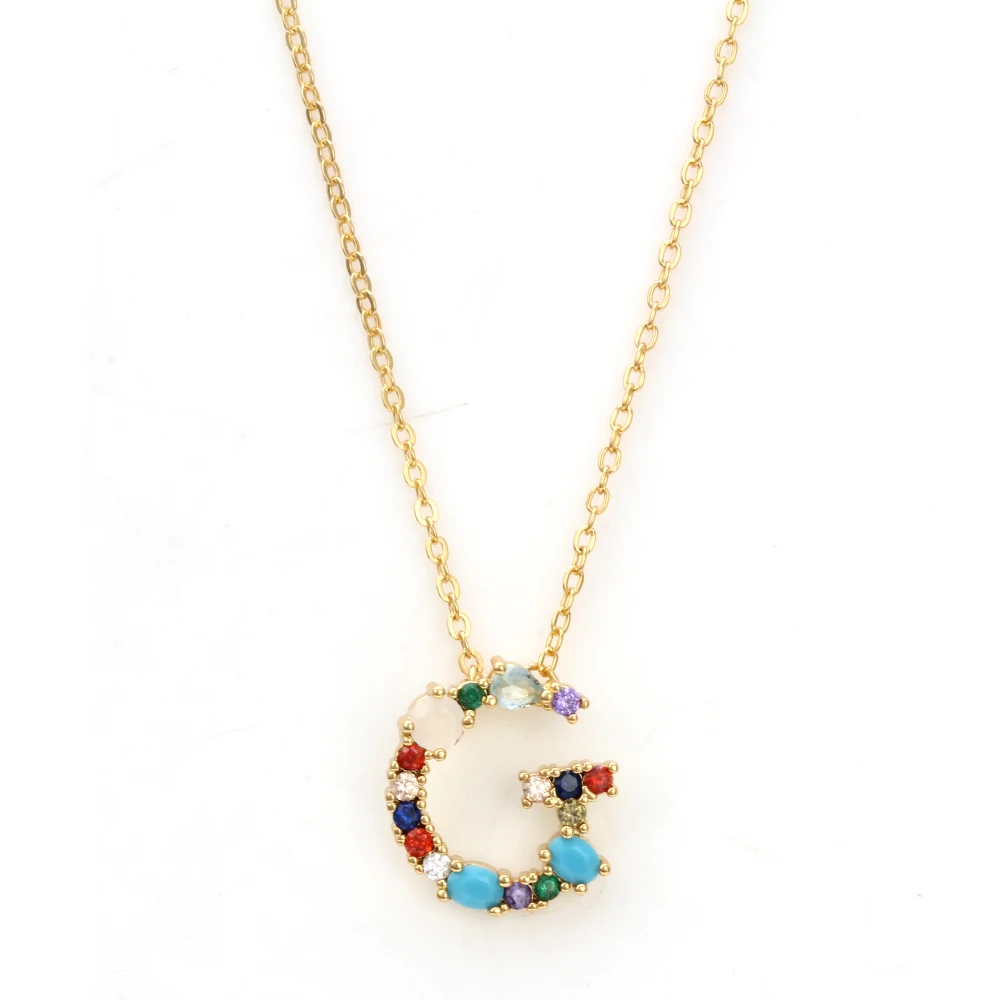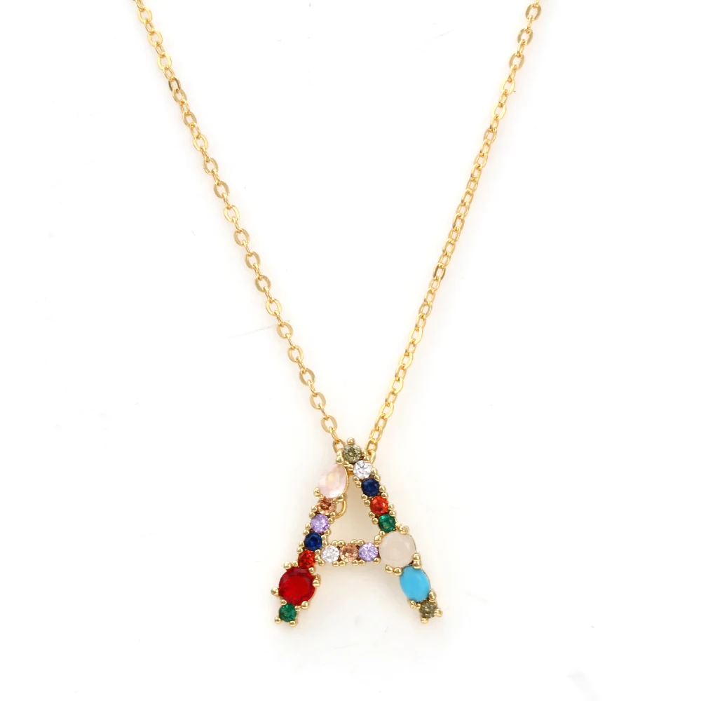 Ideal EVIL EYE Pendant Necklace Gold Color Long Chain 26 Initial Letter Necklace CZ Micro Pave Charm Jewe