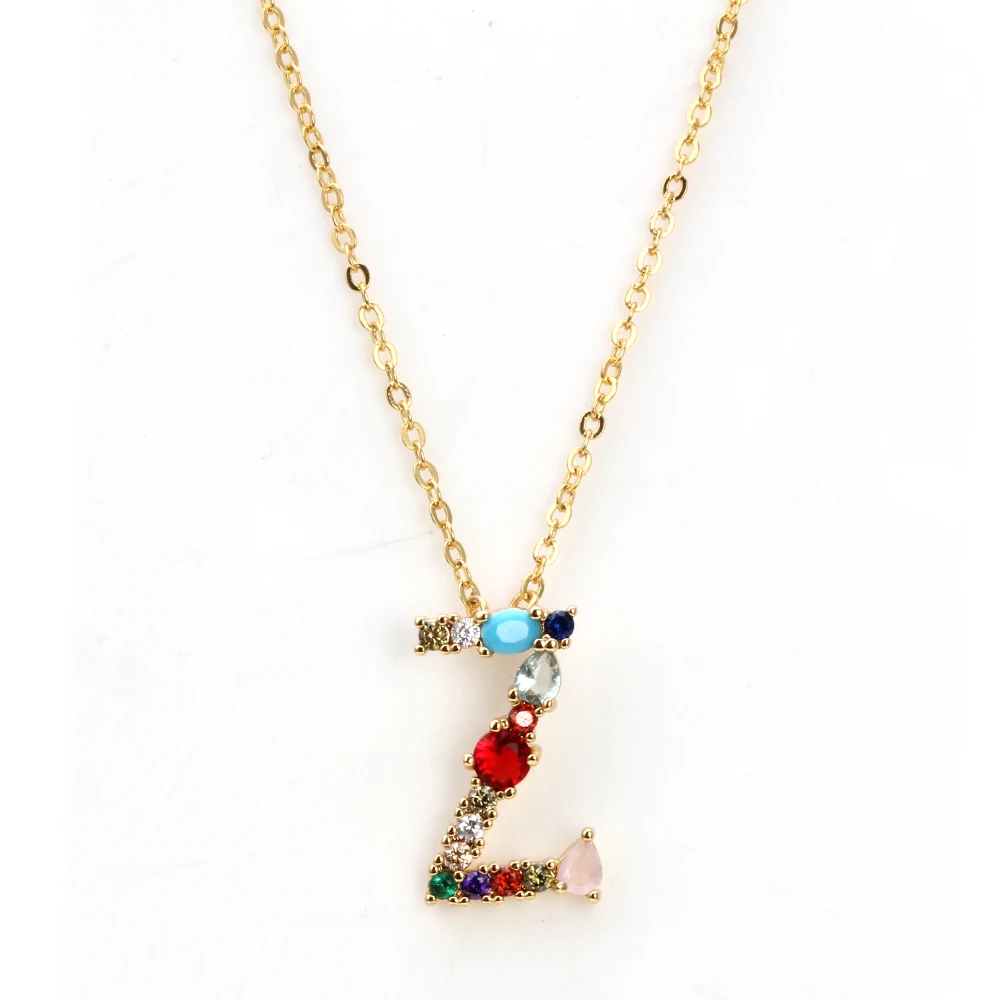 discounted EVIL EYE Pendant Necklace Gold Color Long Chain 26 Initial Letter Necklace CZ Micro Pave Charm Jewe